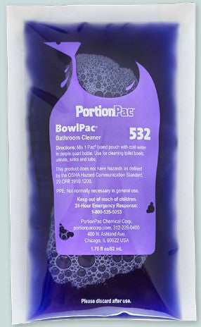 For daily bowl and urinal maintenance. No harsh caustics or dangerous acids. Removes stains, mineral deposits, and rust. Biodegradable formulation. Sold diluted in cases of (6) 1-gallon jugs or 30-gallon drums, or in premeasured, concentrated packs.